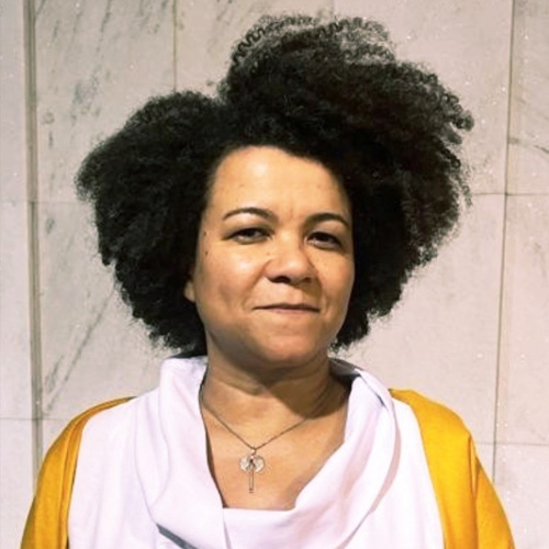 Mulher, negra, lésbica e educadora. Presidenta da APAN – Associação de Profissionais do Audiovisual Negro – e integrante do FICINE – Fórum Itinerante de Cinema Negro. Professora no Centro Universitário UNA, em Belo Horizonte, onde coordena o projeto de extensão universitária PRETANÇA – Afro-brasilidades e Direitos Humanos. Na UFMG, integra o grupos de estudos/pesquisa CORAGEM – Comunicação, Raça e Gênero – e Poéticas da Experiência, além de ser colaboradora do NUH – Núcleo de Direitos Humanos e Cidadania LGBT. Participa do movimento segundaPRETA.